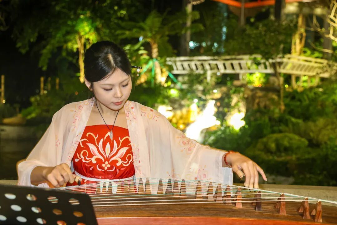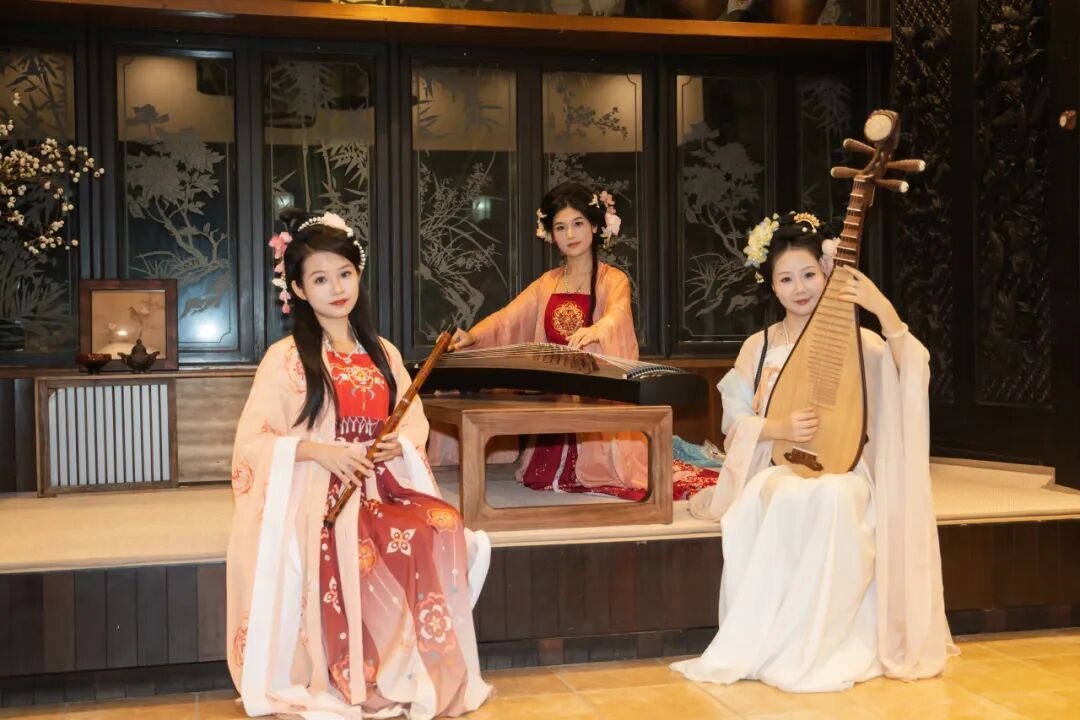 时有古筝、笛子、琵琶之声轻起