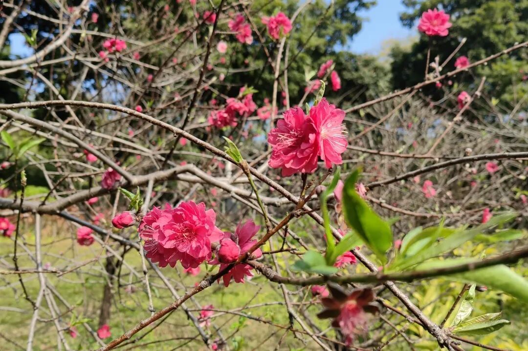 多株桃花竞相绽放
